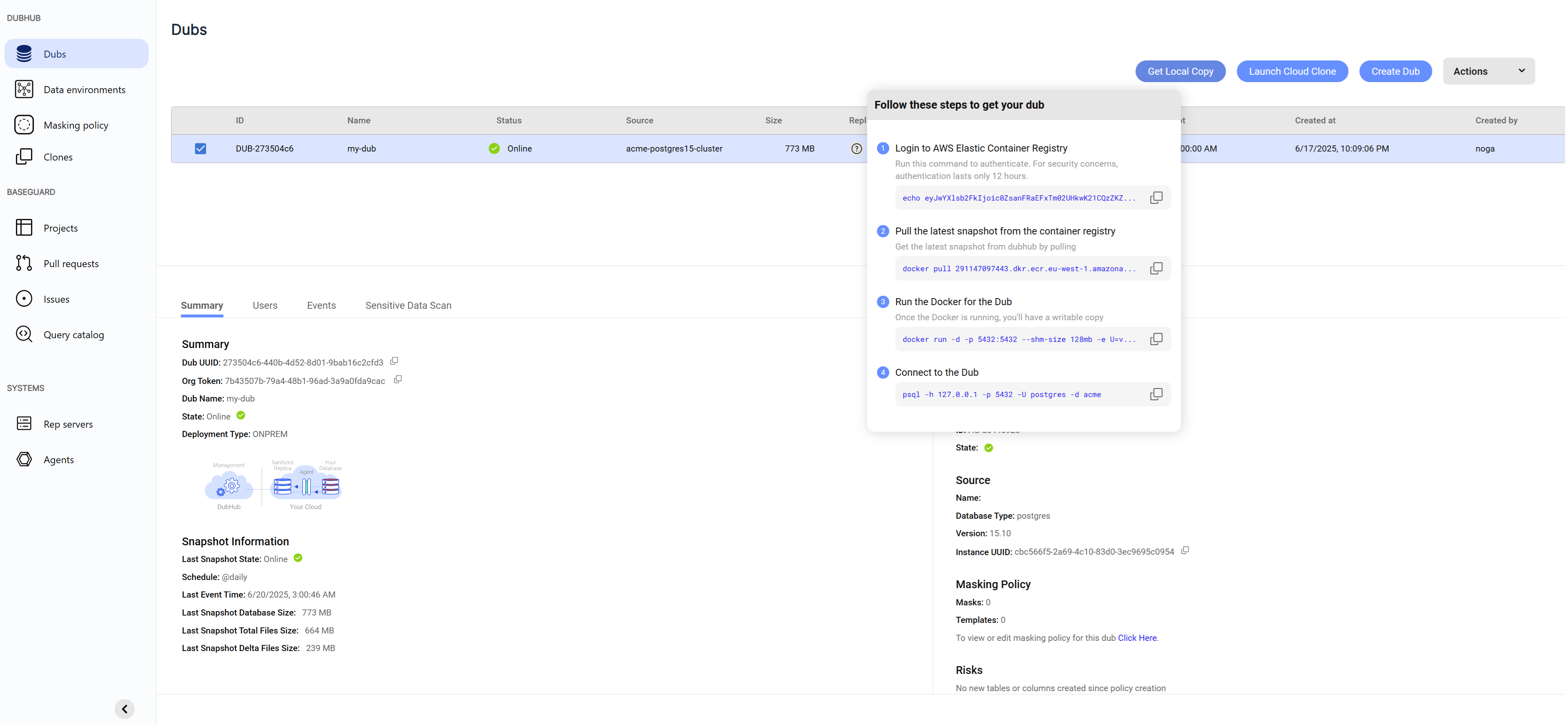 By default, DubHub clones are ephemeral - each time you launch one, it starts fresh from the snapshot.